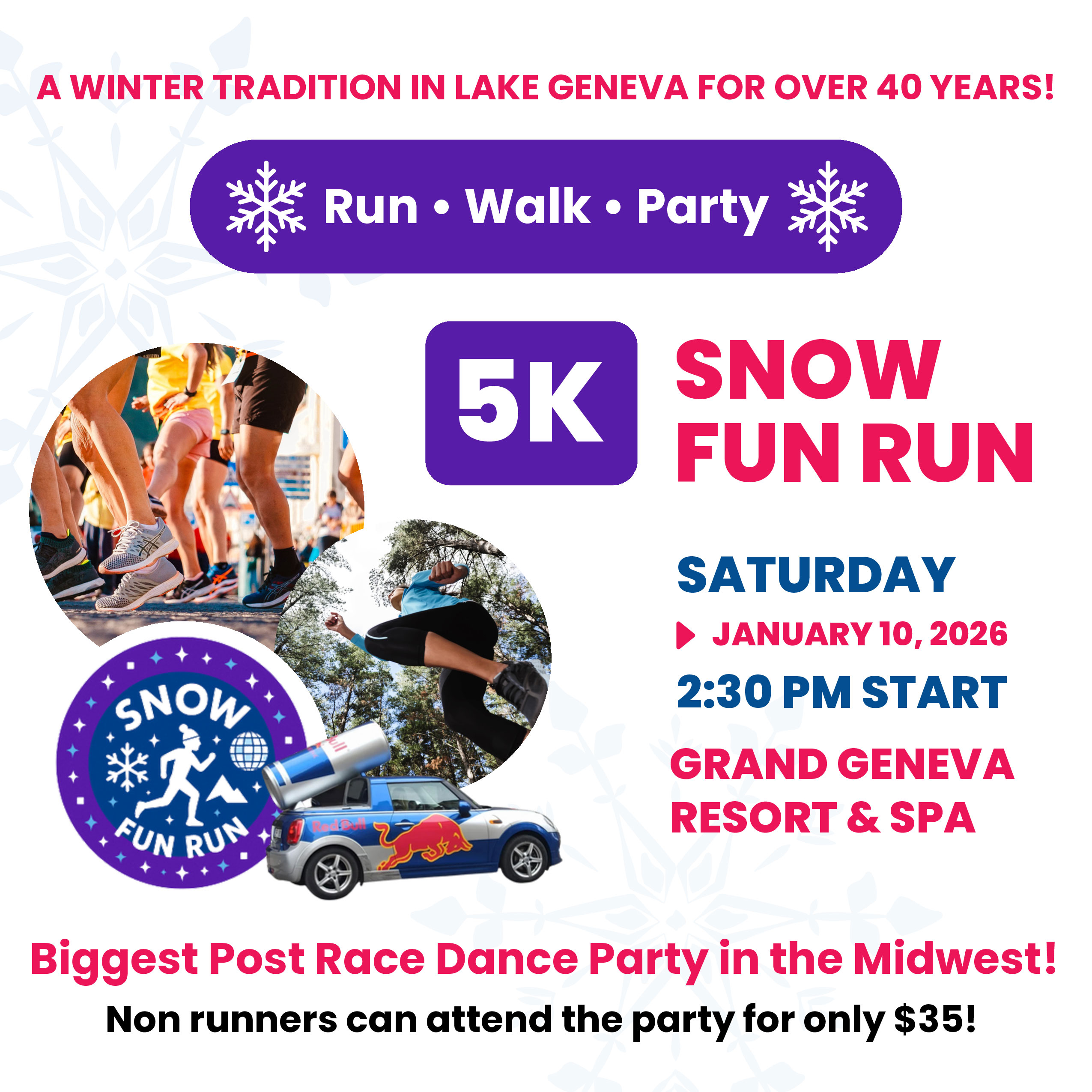 Join us on Saturday, January 10, 2026, for the Snow Fun Run, a Lake Geneva tradition for more than 40 years.